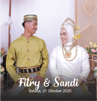 Undangan Cerita Kami Mempelai Galleri Kirim Doa & Ucapan The Wedding Of Fitry & Sandi 00Hari 00Jam 00Menit 00Detik Selasa, 21 Oktober 2025 “Dan di antara tanda-tanda (kebesaran)-Nya ialah Dia menciptakan pasangan-pasangan untukmu dari jenismu sendiri, agar kamu cenderung dan merasa tenteram kepadanya, dan Dia menjadikan di antaramu rasa kasih dan sayang. Sungguh, pada yang […]