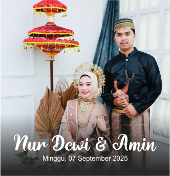 The Wedding of Nur Dewi & Amin Minggu, 07 September 2025 00Hari 00Jam 00Menit 00Detik “Dan Diantara Tanda-tanda (Kebesaran) -Nya Ialah Dia Menciptakan Pasangan-pasangan Untukmu Dari Jenismu Sendiri, Agar Kamu Cenderung Dan Merasa Teteram Kepadanya, Dan Dia Menjadikan Diantaramu Rasa Kasih Dan Sayang. Sungguh, Pada Yang Demuikian Itu Benar-benar Terdapat Tanda-tanda (Kebesaran Allah) Bagi Kaum […]