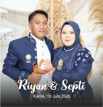 Wedding Invitation We invited you to celebrate our wedding Riyan & Septi Kamis, 19 Juni 2025 Assalamu’alaikum Warahmatullahi Wabarakatuh Tanpa mengurangi rasa hormat, perkenankan kami mengundang Bapak/Ibu/Saudara/i, serta kerabat sekalian, untuk menghadiri acara pernikahan kami ” Dan di antara tanda-tanda kekuasaan-Nya diciptakan-Nya untukmu pasangan hidup dari jenismu sendiri supaya kamu dapat ketenangan hati dan dijadikannya […]
