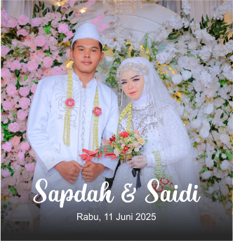 THE WEDDING OF Sapdah & Saidi Rabu, 11 Juni 2025 Dan di antara tanda-tanda (kebesaran)-Nya ialah Dia menciptakan pasangan-pasangan untukmu dari jenismu sendiri, agar kamu cenderung dan merasa tenteram kepadanya, dan Dia menjadikan di antaramu rasa kasih dan sayang. Sungguh, pada yang demikian itu benar-benar terdapat tanda-tanda (kebesaran Allah) bagi kaum yang berpikir. ————————————- We […]